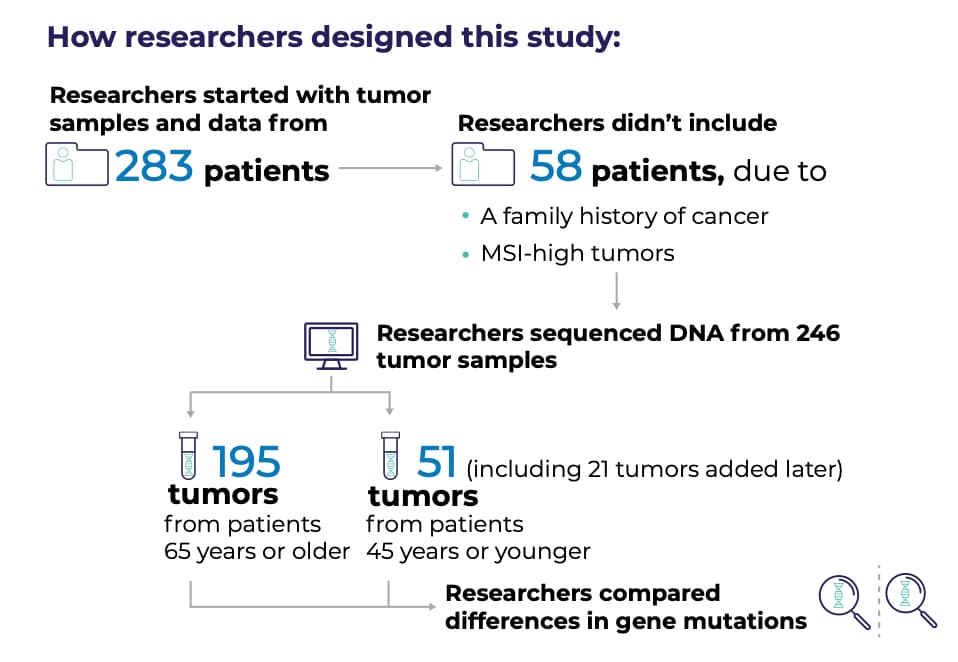 In this study, researchers sequenced and looked for any gene mutations between the tumors of younger and older adults. Researchers looked at differences in: